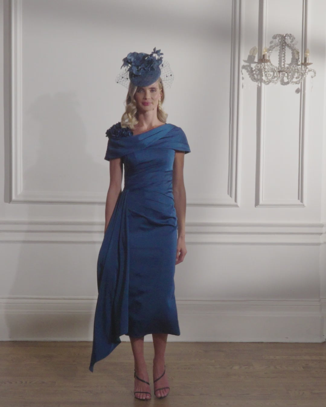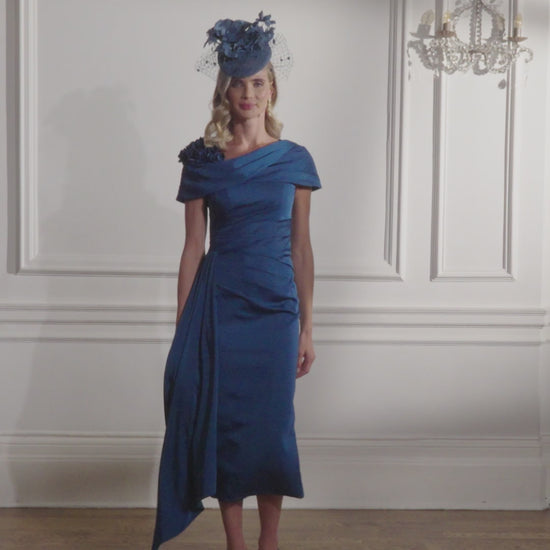 Exude timeless elegance in this John Charles midi dress, a refined statement piece designed to turn heads. Featuring a graceful Bardot collar that flatters the neckline, the dress is elevated by intricate floral cutwork detailing on one shoulder—adding a touch of romantic charm. A soft, layered design graces the middle section, offering flattering structure and dimension. On one side, delicately draped fabric cascades to create fluid movement and a sophisticated silhouette. Perfect for weddings, special occasions, or evening events, this dress embodies modern femininity with classic flair.