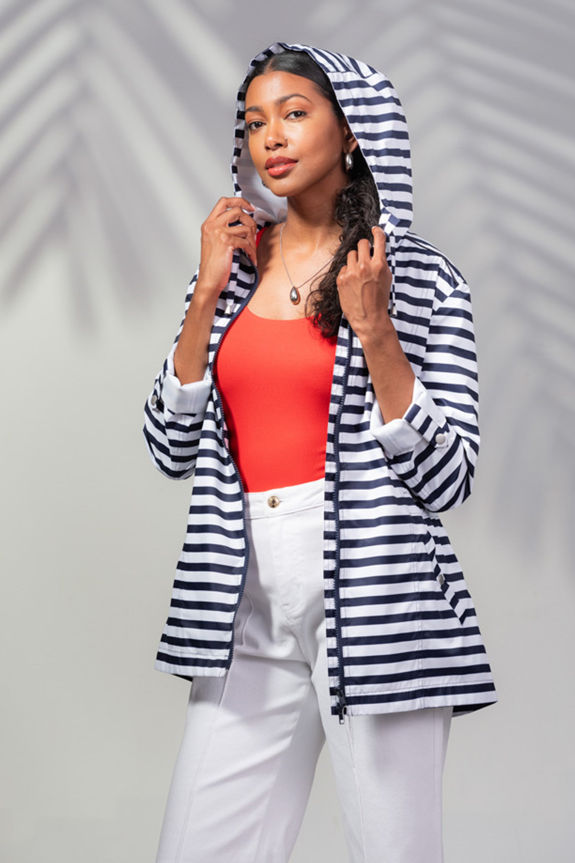 Alison Sheri Waterproof Striped Hooded Jacket Navy/White A45430