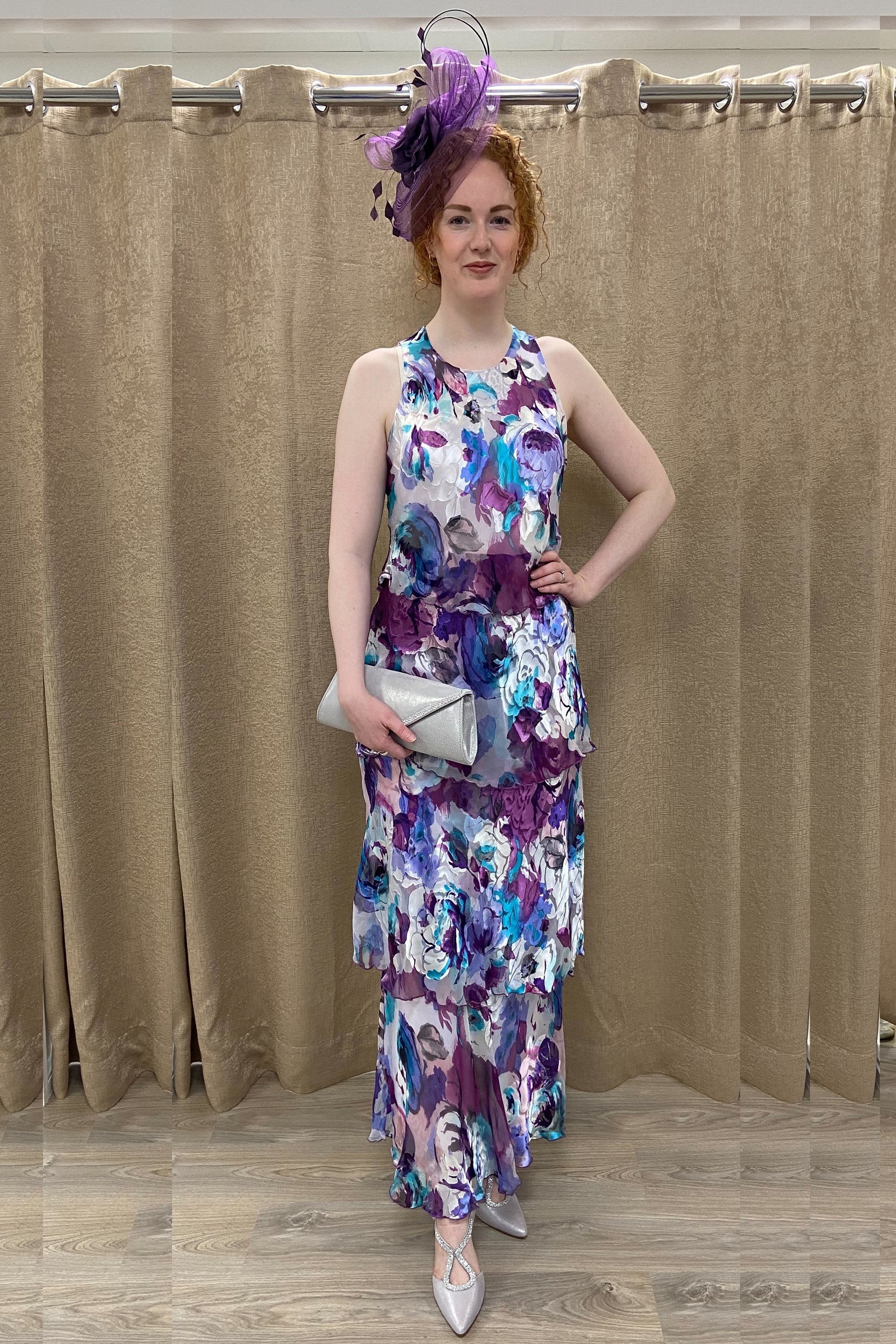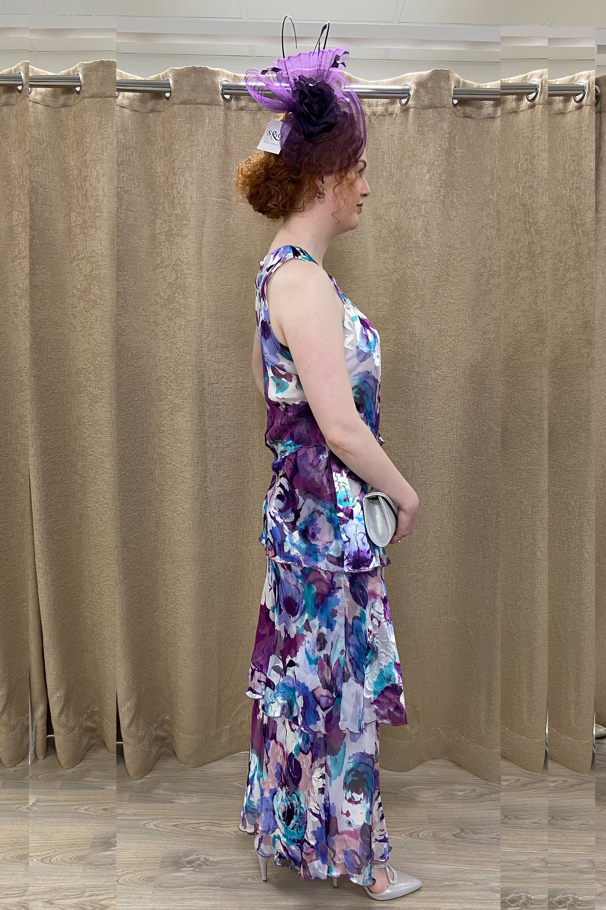 Allison Floral Print Layered Silk Dress Purple Rose 61157