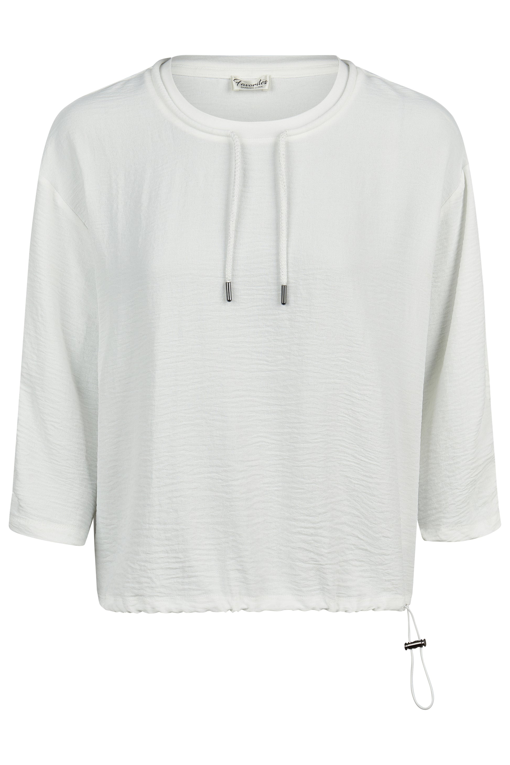 This drawstring top features a classic round neckline and flattering three-quarter length sleeves. Finished with a toggle waist for an adjustable fit, it’s an easy, versatile piece for everyday styling.