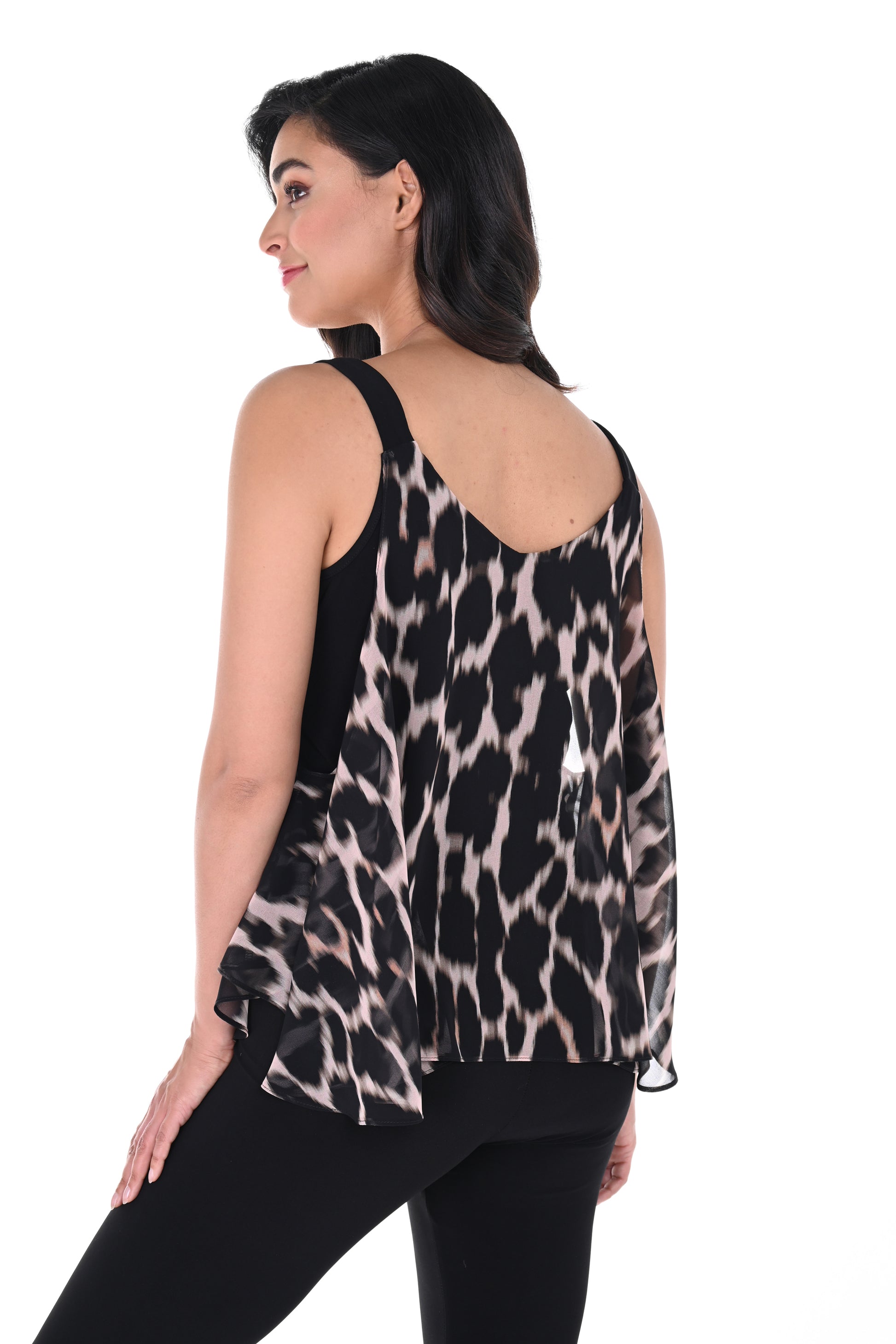 Frank Lyman Animal Print Chiffon Overlay Top Black/Blush 246354