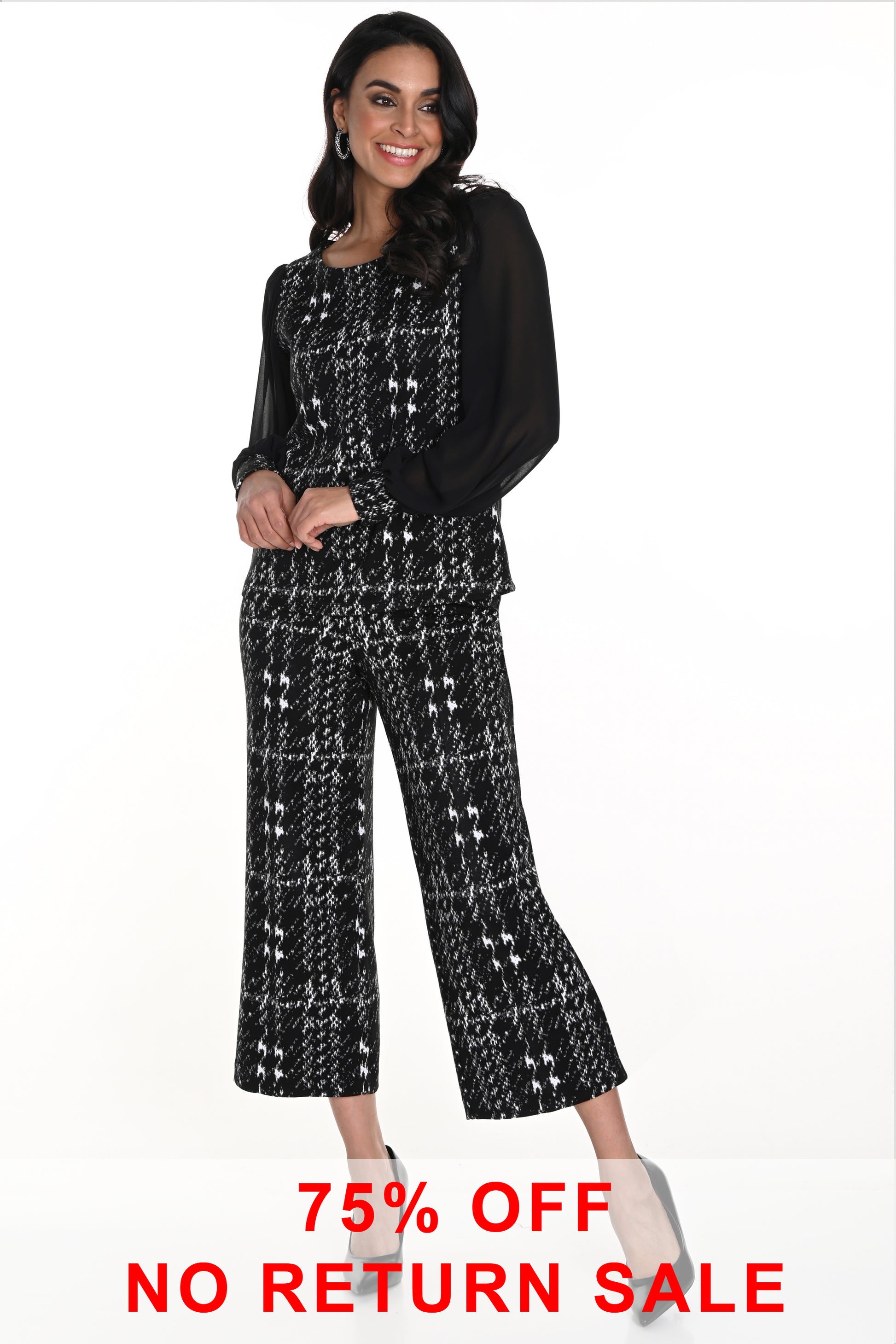 Frank Lyman Cropped Textured Knit Trousers Black/Off White 243350-1004
