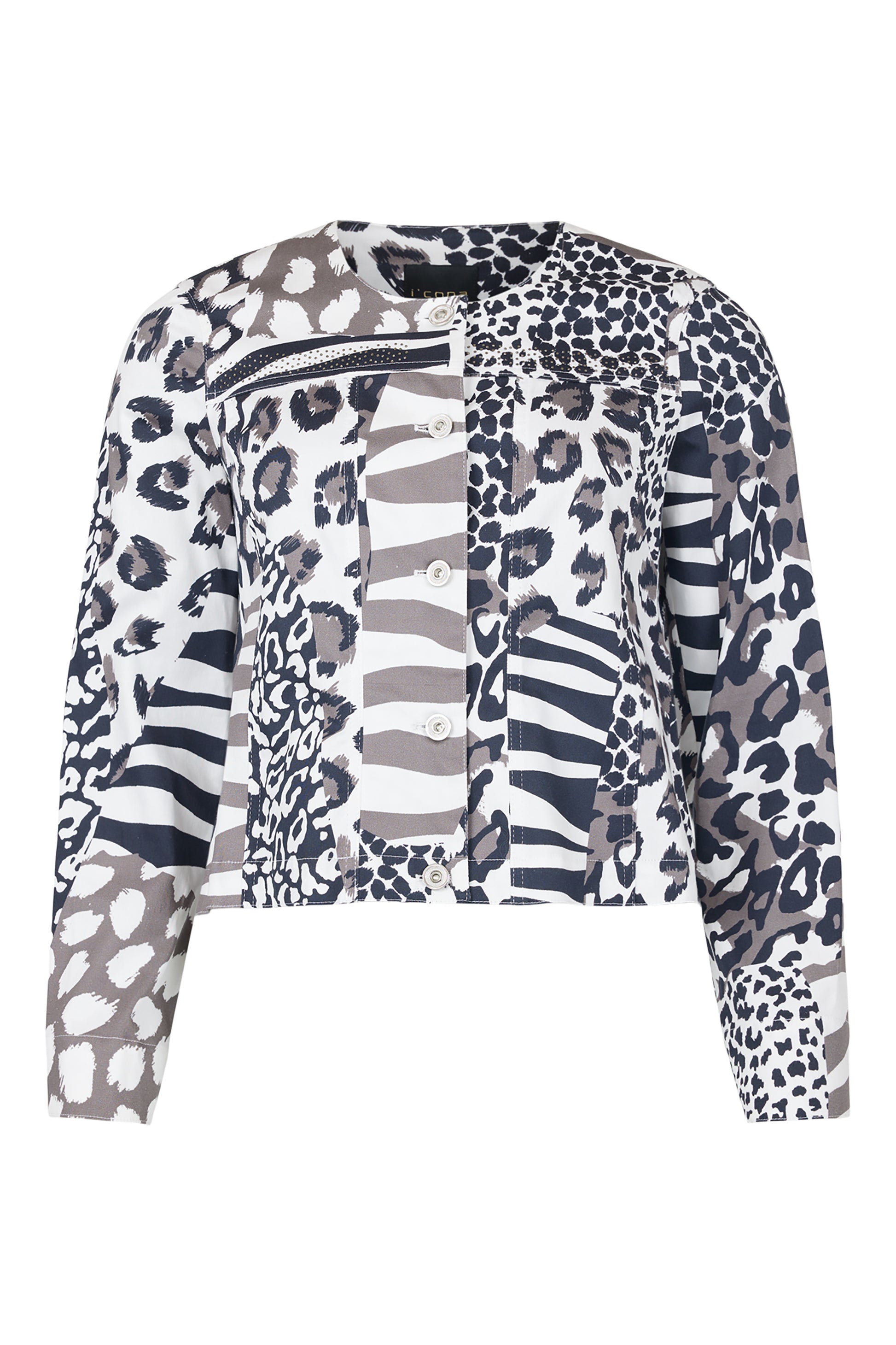 I'cona Animal Print Short Length Jacket - Grey - 67339-60311-97