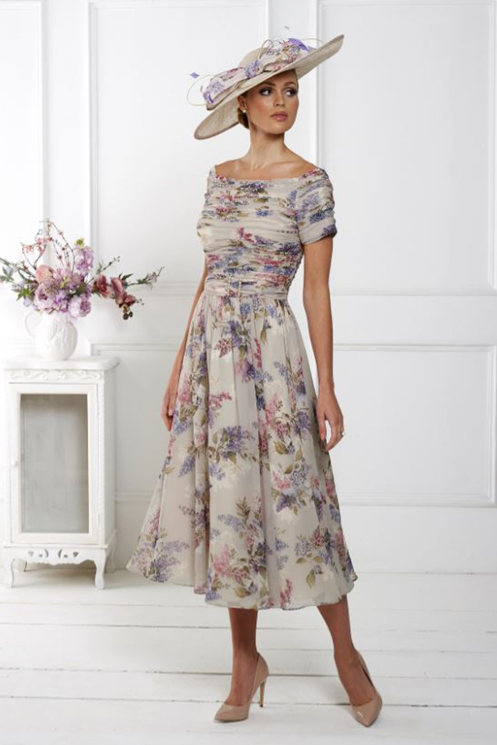 Elevate your wardrobe with timeless elegance and feminine charm with our latest addition: the Irresistible Floral Print Pearl Detail Dress in ivory and wisteria. Adorned with delicate pearl detailing around the neckline and a pearl buckle accentuating the waistband, this dress exudes sophistication and grace. Available exclusively in-store, book your appointment now to experience personalised styling and secure your perfect fit. Call 01330825655 or book online to embark on your journey to impeccable style with Irresistible.
