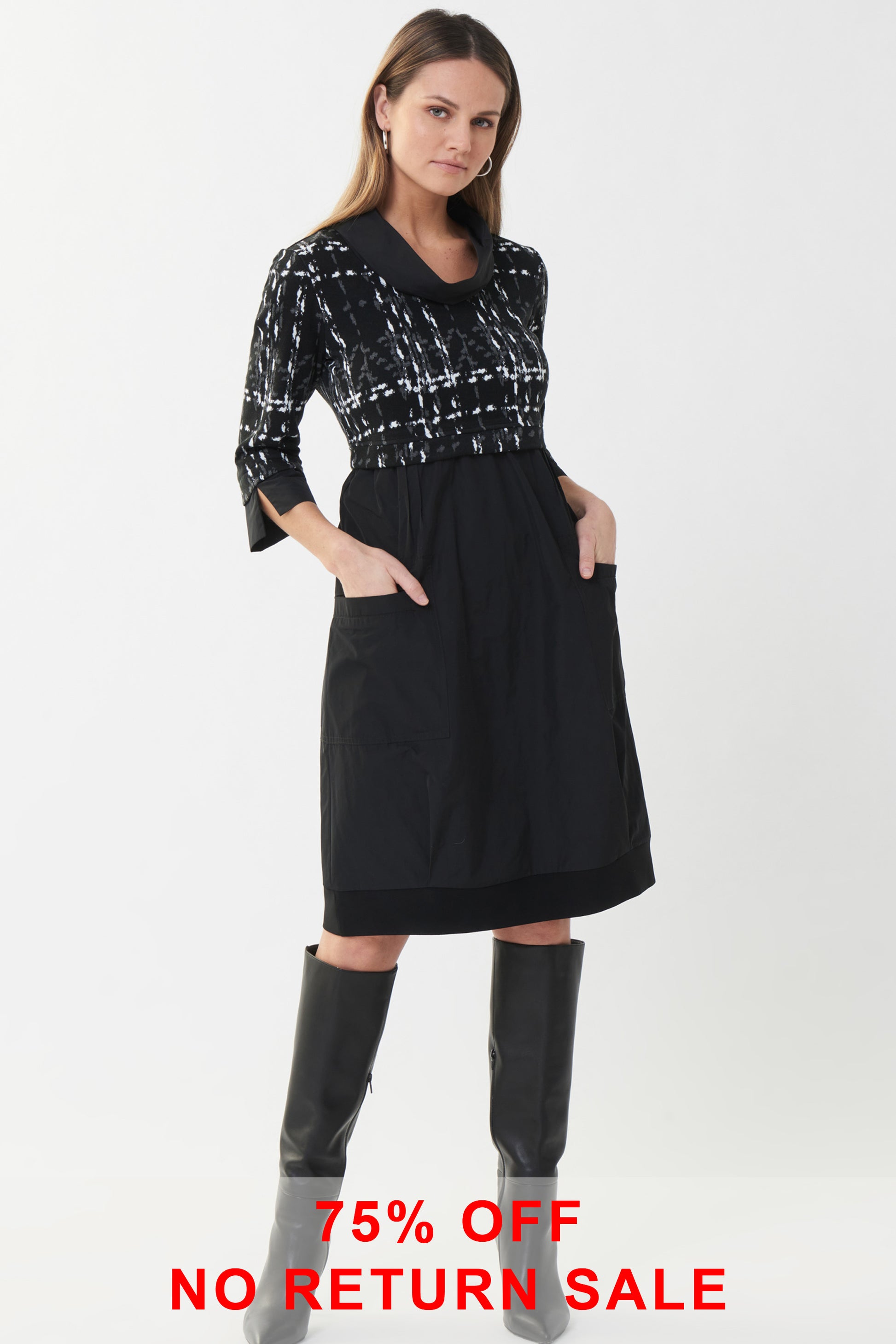 Joseph Ribkoff Checked Cowl Neck Dress Black/White 223232-1874