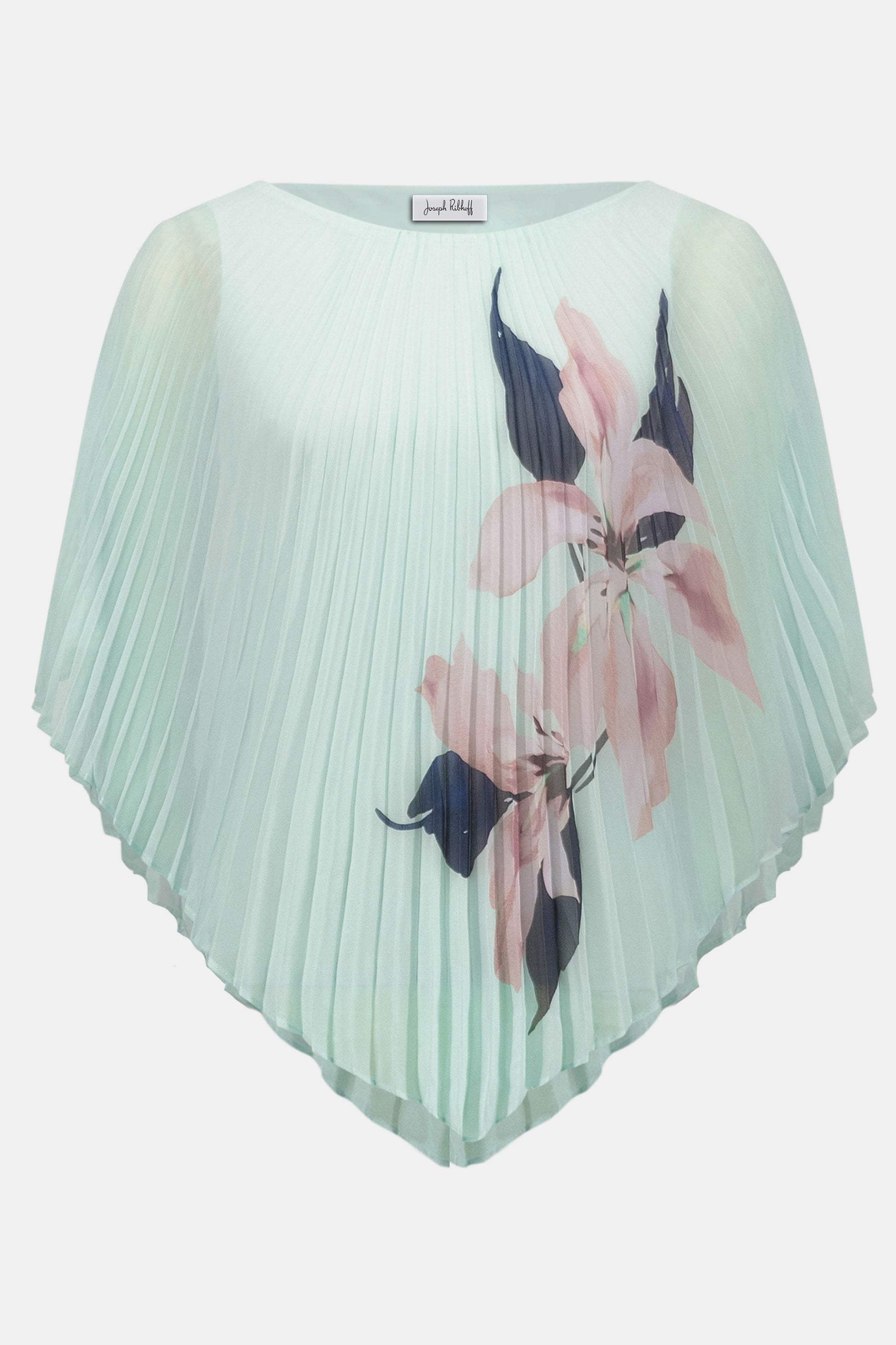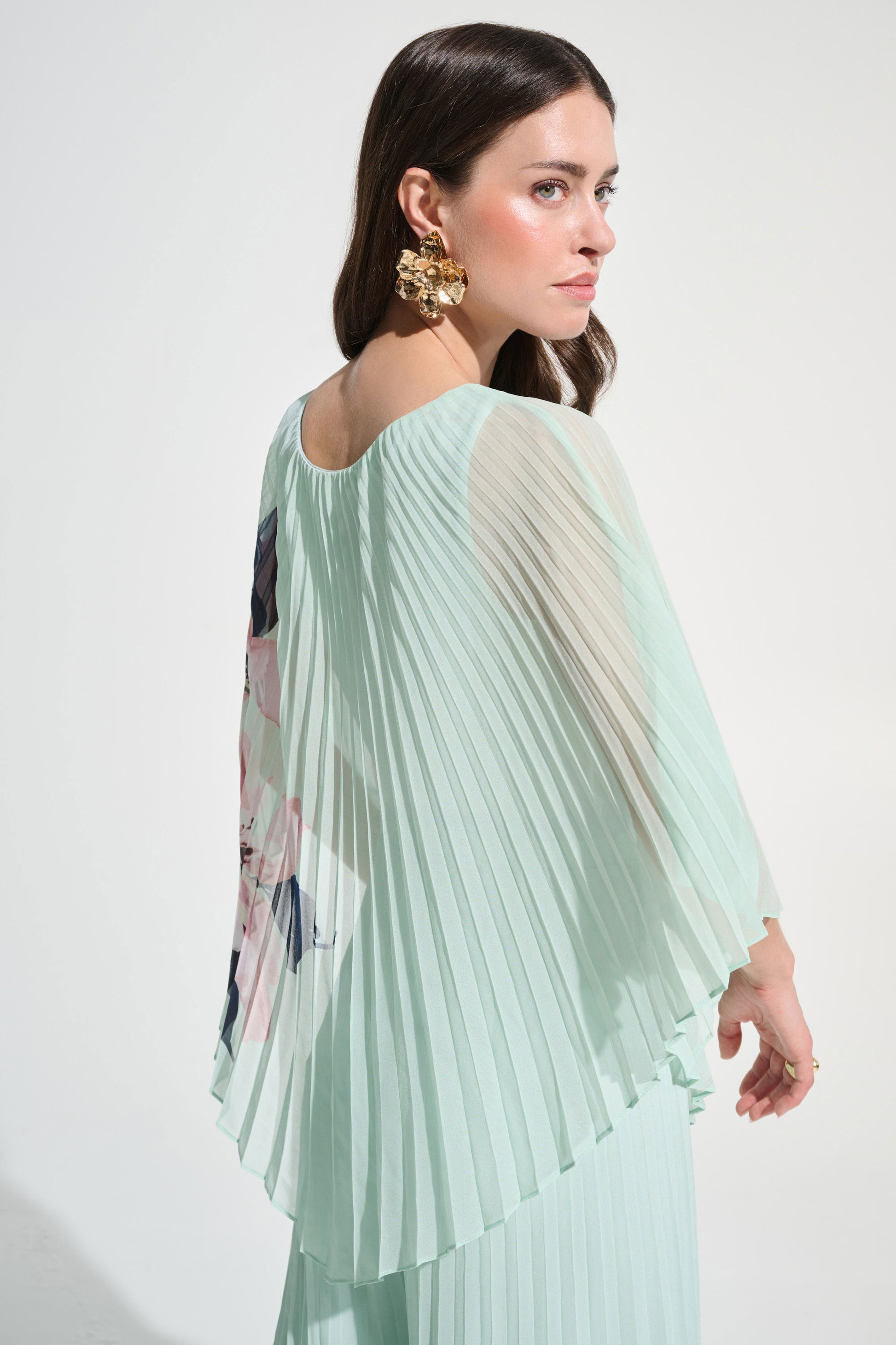 Joseph Ribkoff Chiffon Floral Print Pleated Wide Leg Pants and Poncho Set Green/Multi 262718/262724-684