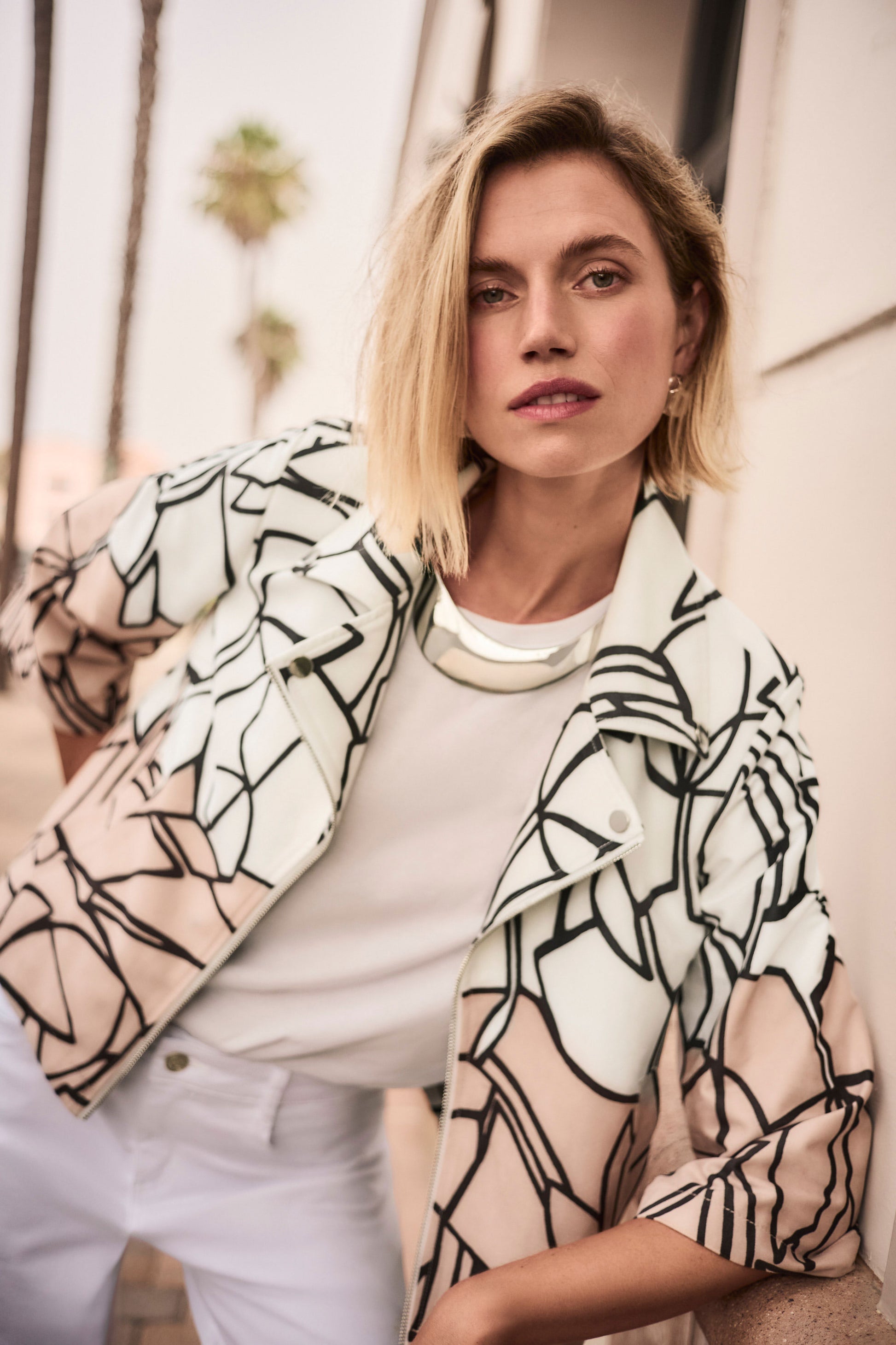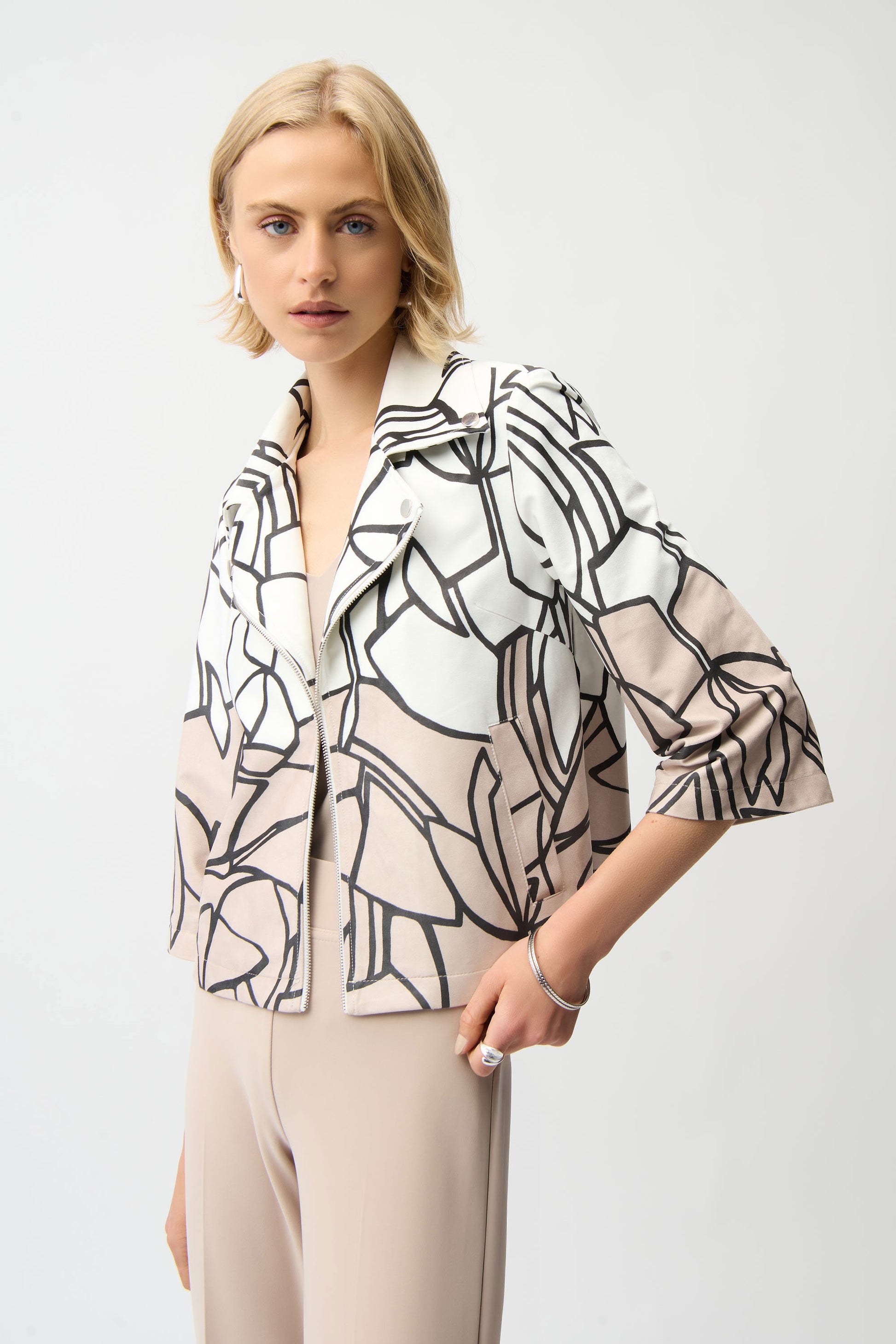 Joseph Ribkoff Faux Suede Abstract Print Swing Jacket Vanilla/Multi 261908-2539