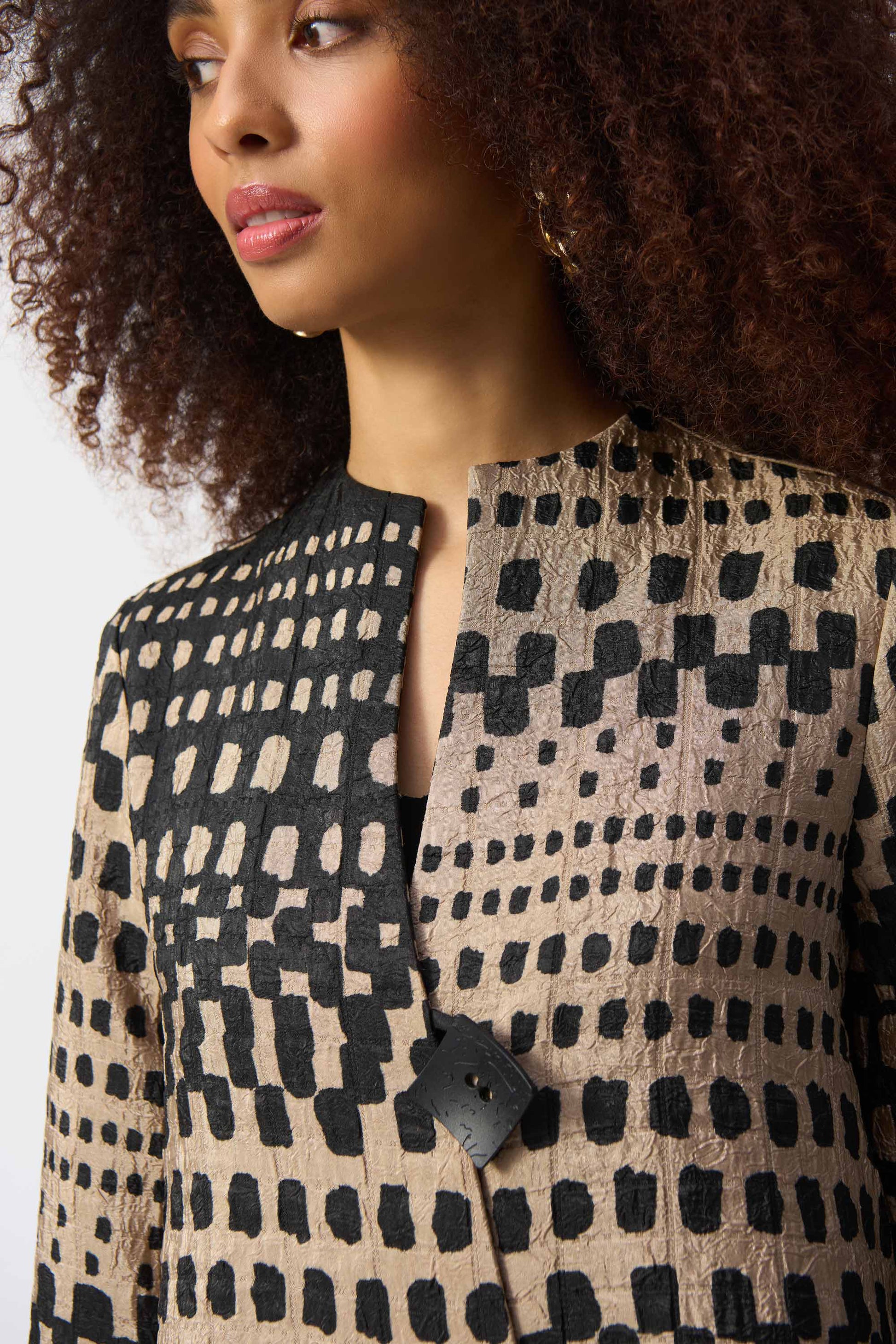 Joseph Ribkoff Jacquard Geometric Print Trapeze Jacket Black/Dune 251178-4220