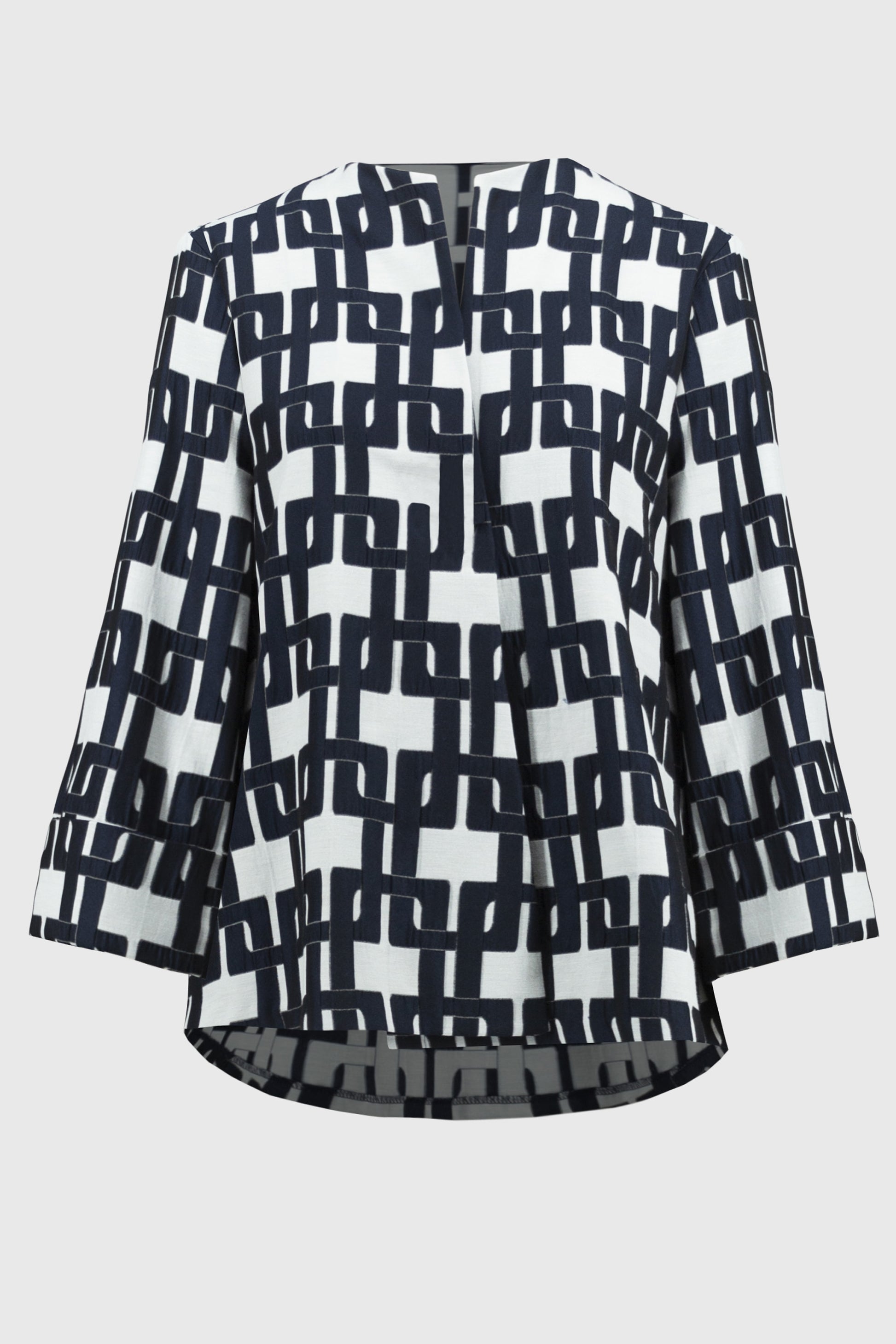 Joseph Ribkoff Geo Jacquard Trapeze Top Off White/Navy 251000-4252