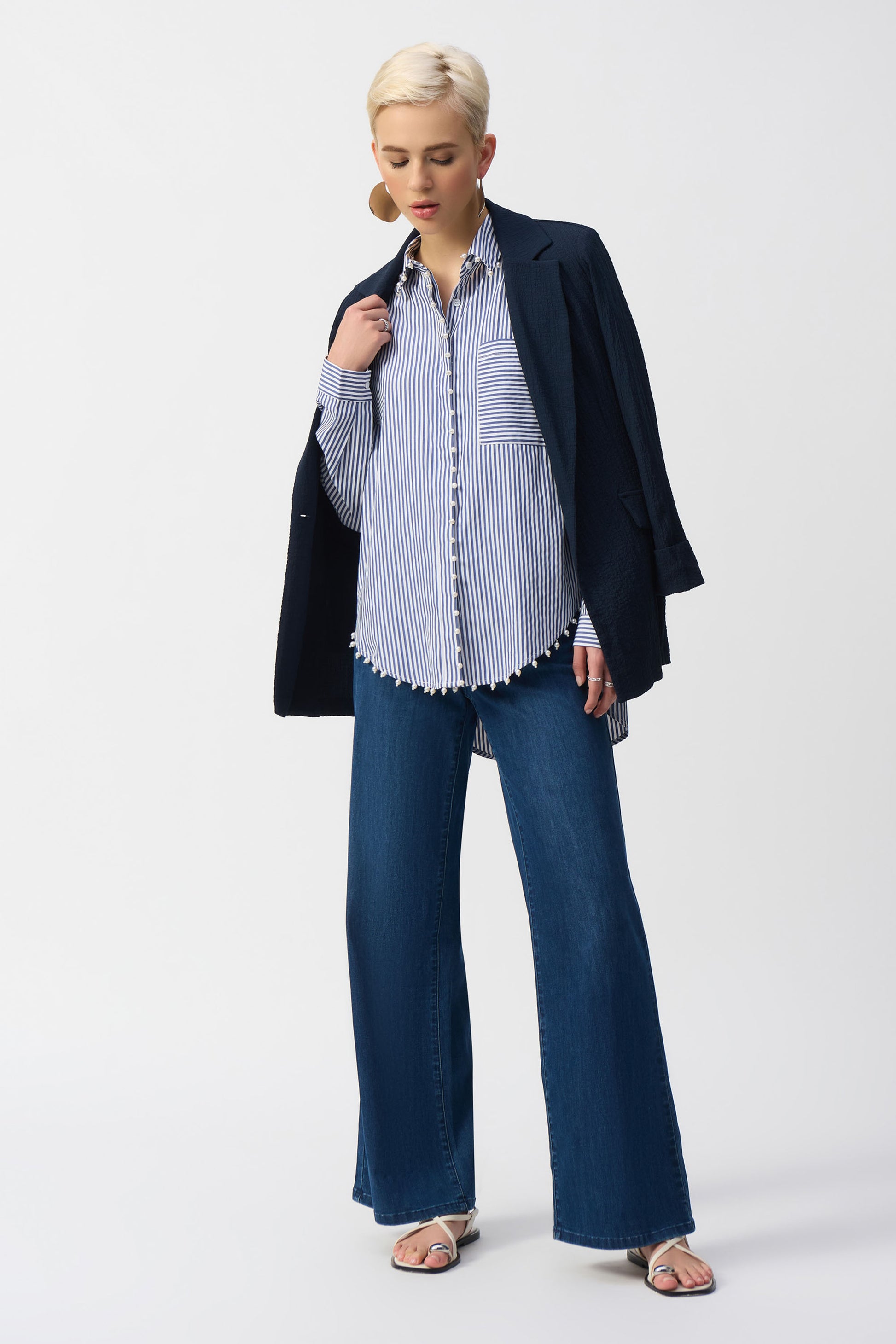 Joseph Ribkoff Striped Stretch Cotton Shirt Midnight Blue/White 251942-2230