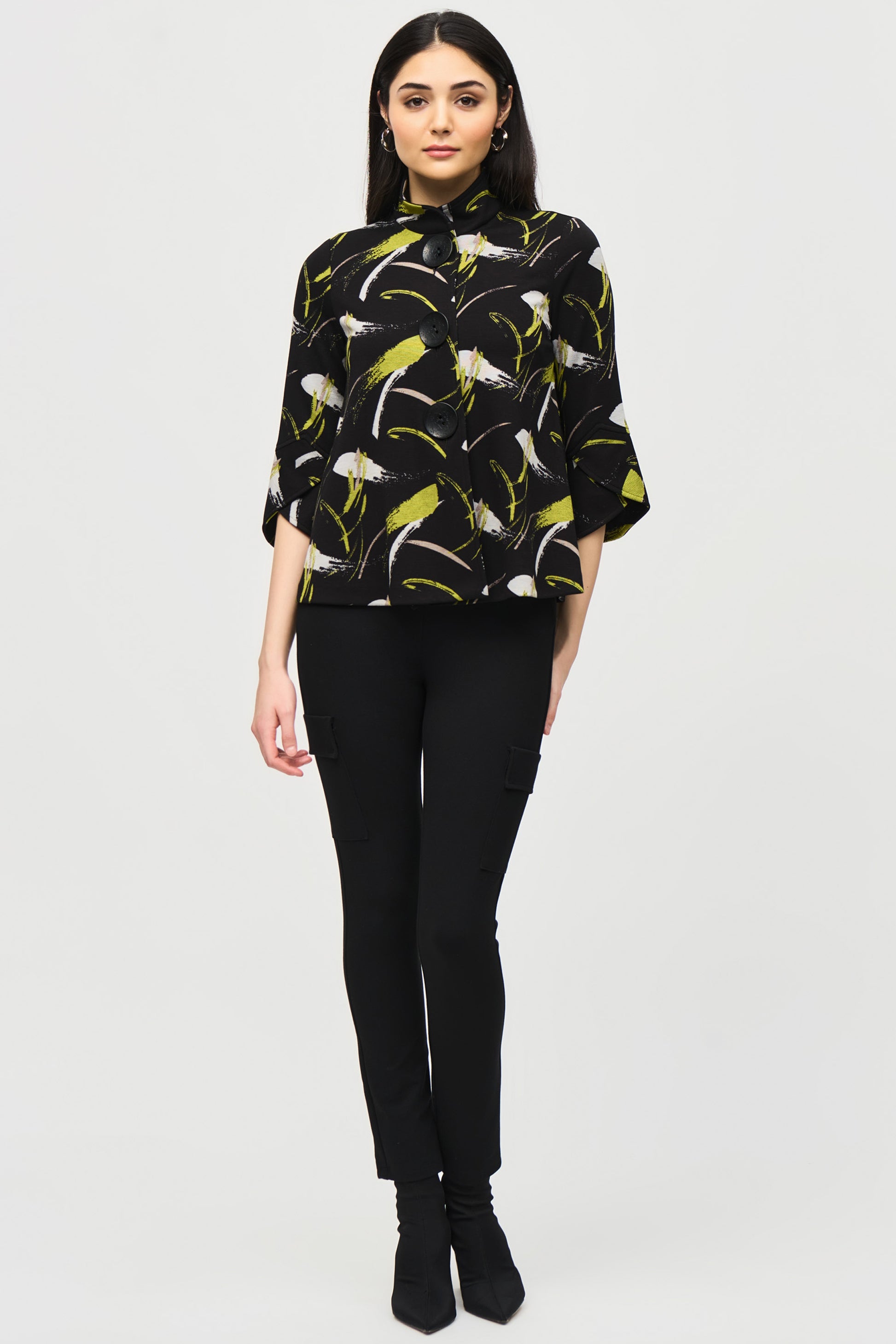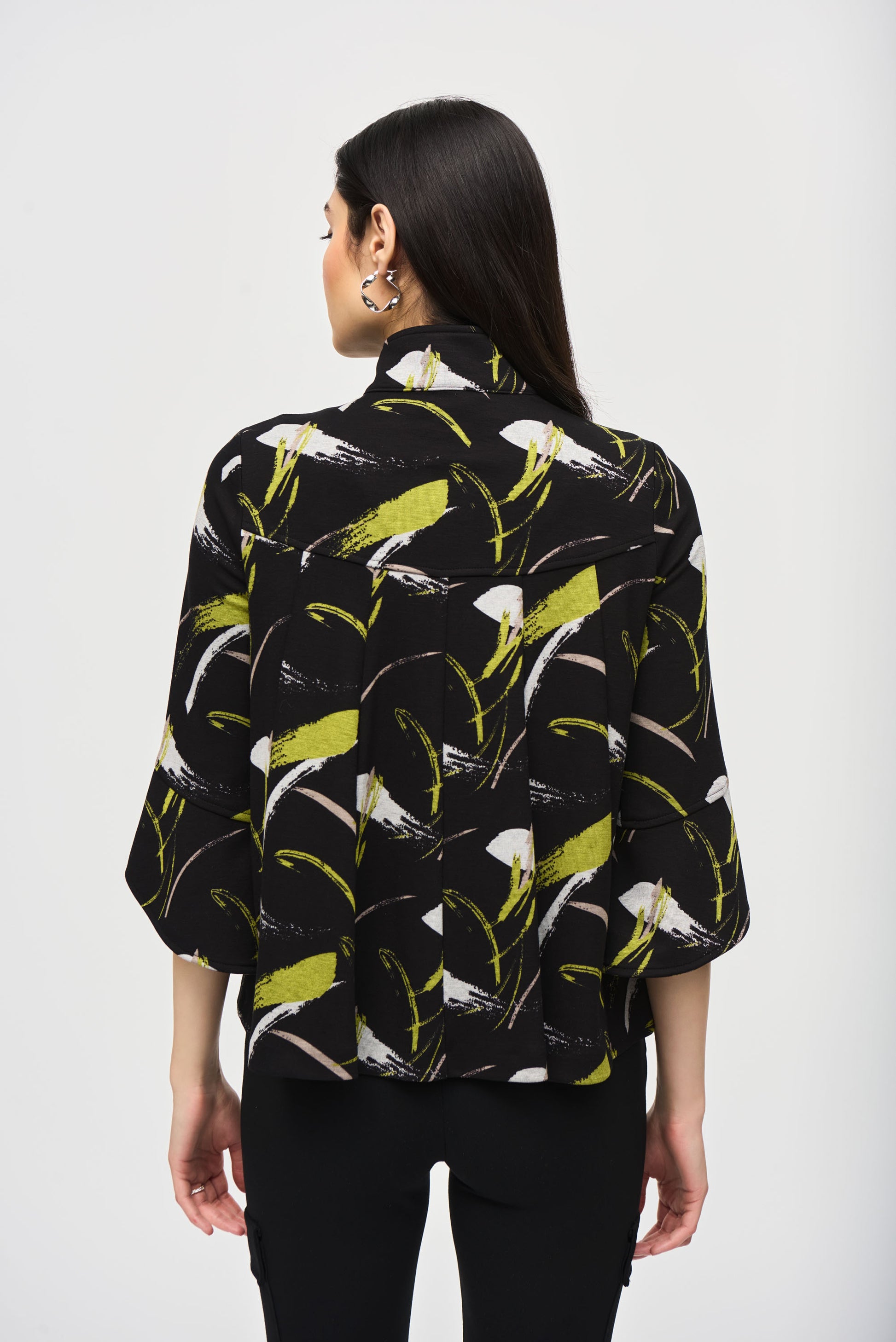 Joseph Ribkoff Sweater Knit Abstract Print Trapeze Jacket Black/Multi 243326-178