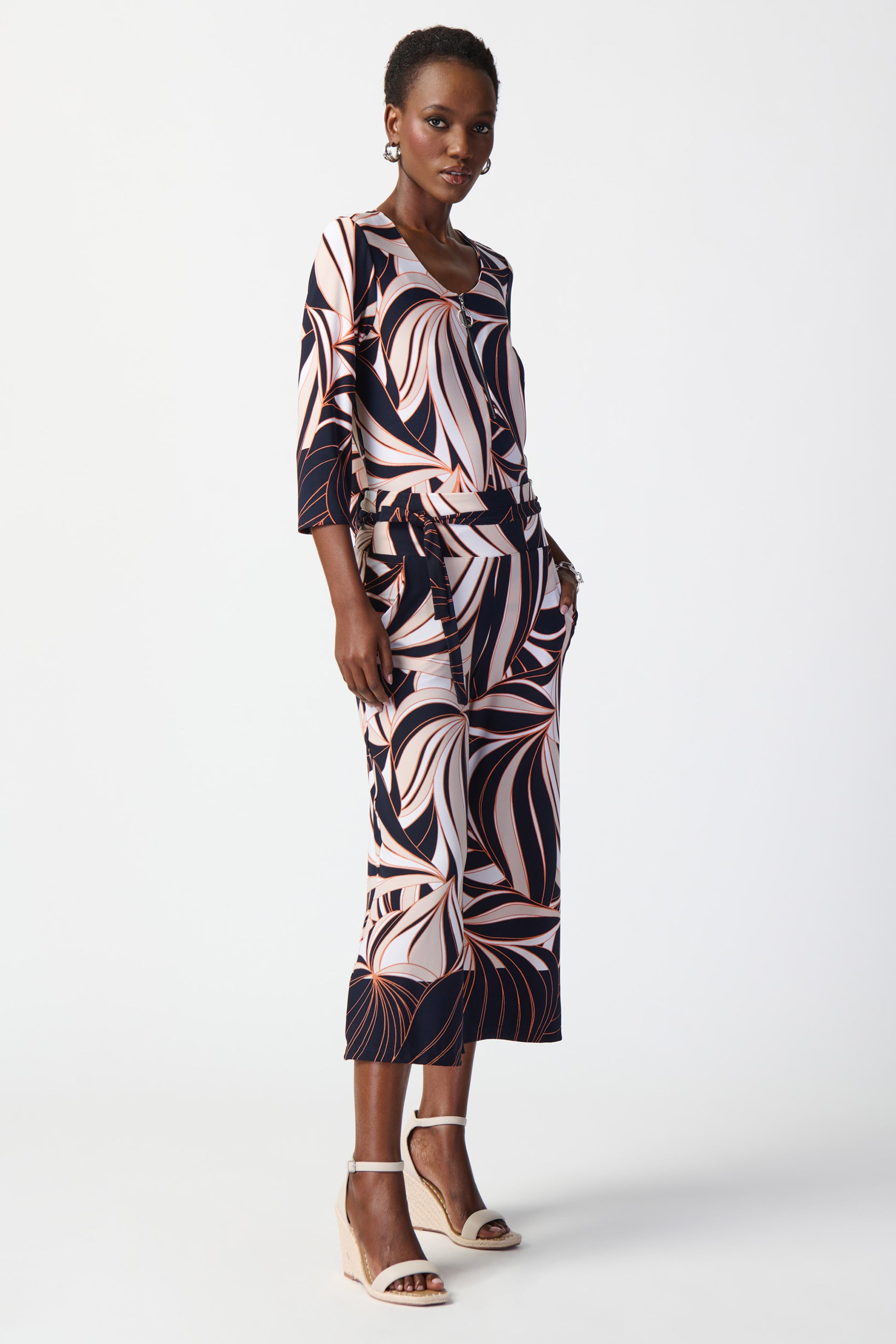 Joseph Ribkoff Tropical Print Silky Knit High Low Top Midnight Blue 241143-3316