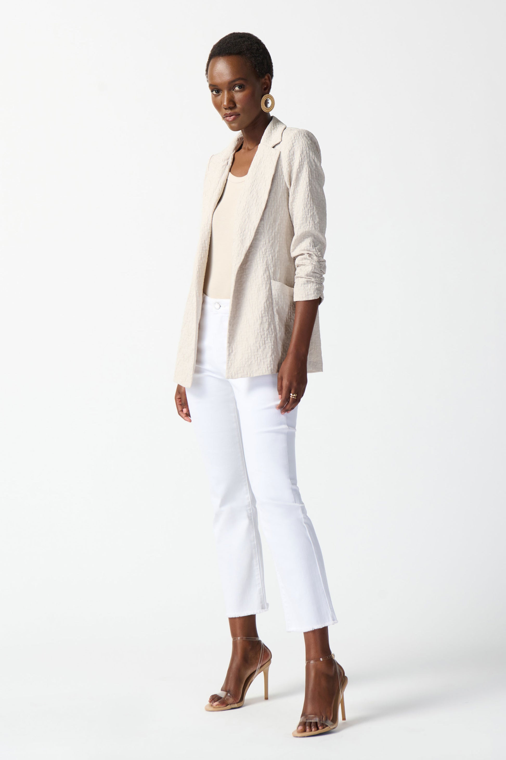 Joseph Ribkoff Woven Jacquard Texture Boxy Blazer Moonstone 242034-3854