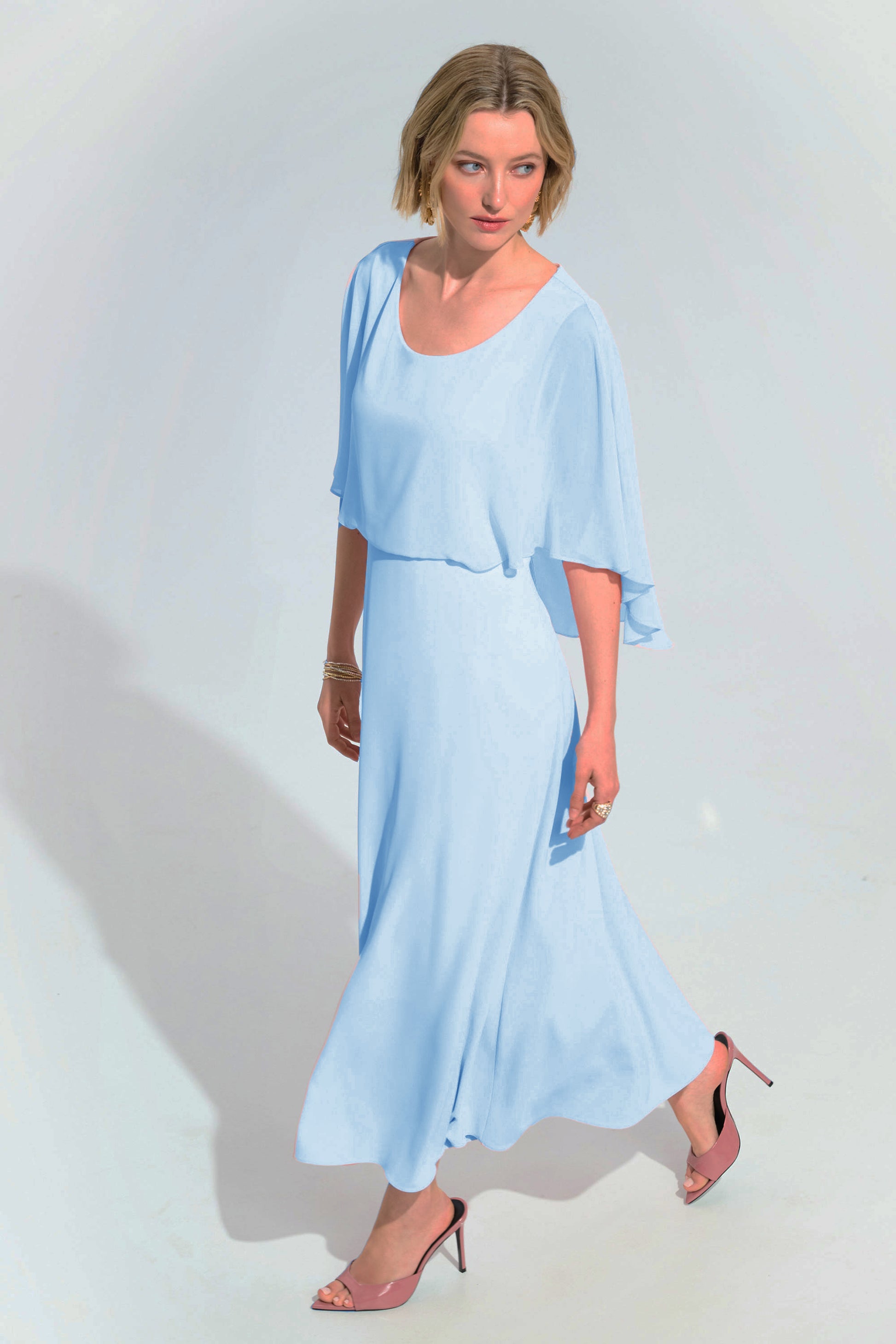 Joseph Ribkoff Woven Twill A-Line Dress With Chiffon Overlay Sky Blue 261708-4373