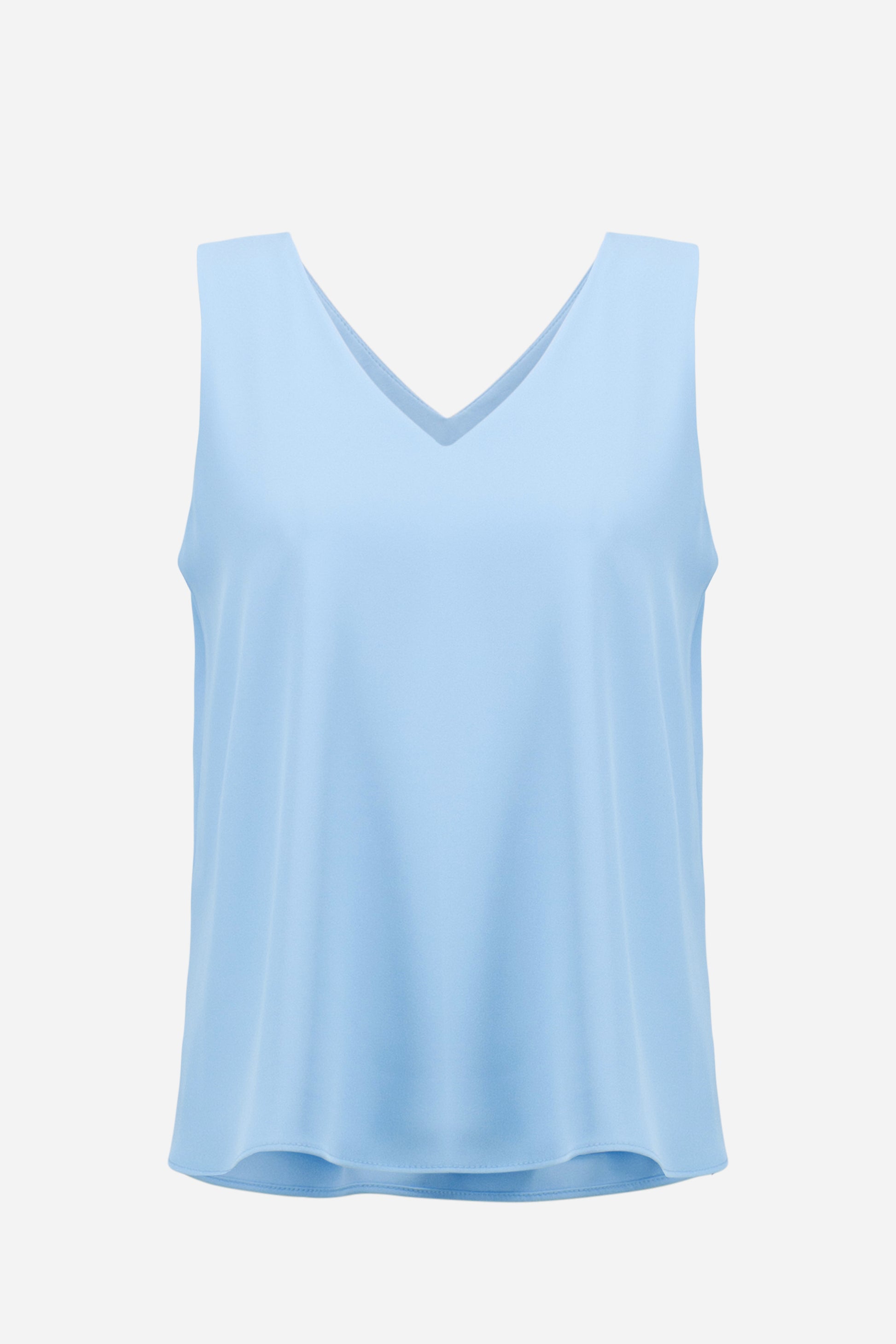 Joseph Ribkoff Woven Twill Sleeveless Straight Top With V-neckline Sky Blue 261248-4473