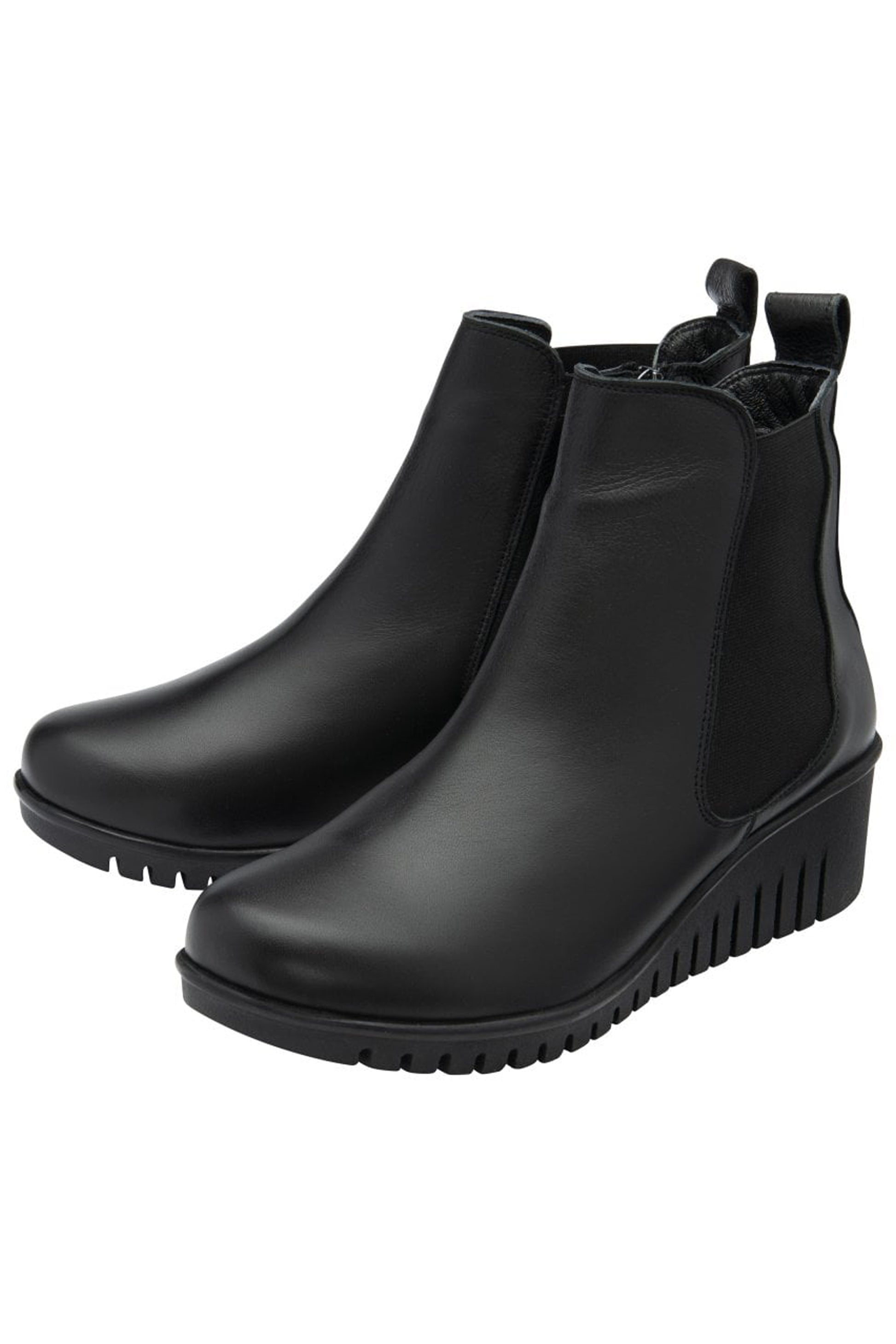 Introducing the Dresden black leather boots from Lotus - a fresh take on the timeless Chelsea boot. This elegant women’s black boot exudes versatility, seamlessly complementing a myriad of outfits. Crafted from premium leather, both in the upper and insock, this round-toe ankle boot features classic elasticated side panels and a convenient pull heel tab. The real showstopper, however, is the 4.5cm wedge heel, perfectly balanced to offer both comfort and style. Pair the Lotus Dresden boots for women with cropped trousers or a flowy midi skirt to effortlessly elevate your everyday ensembles.