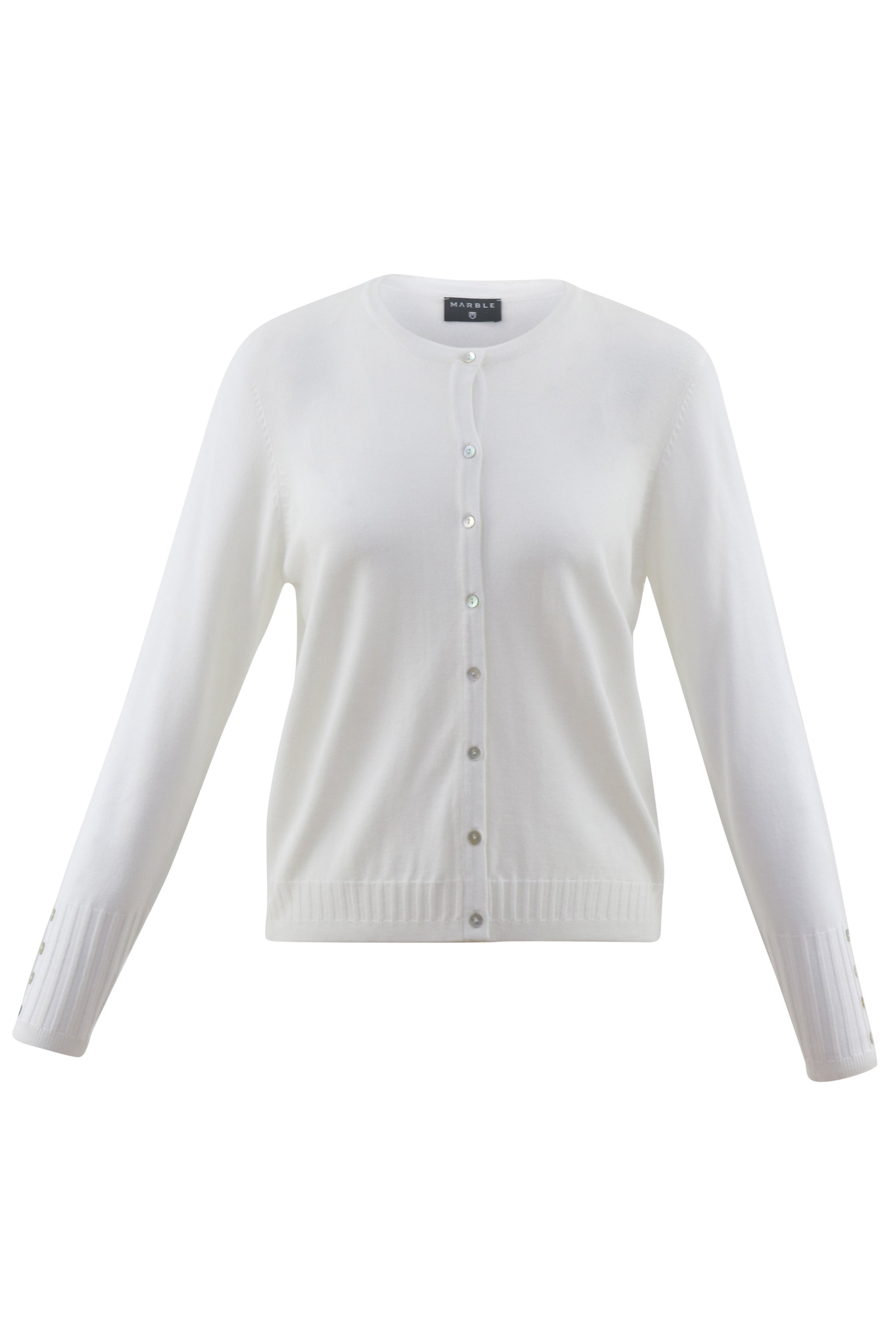 Marble Fine Knit Ribbed Detail Cardigan White 6500-102