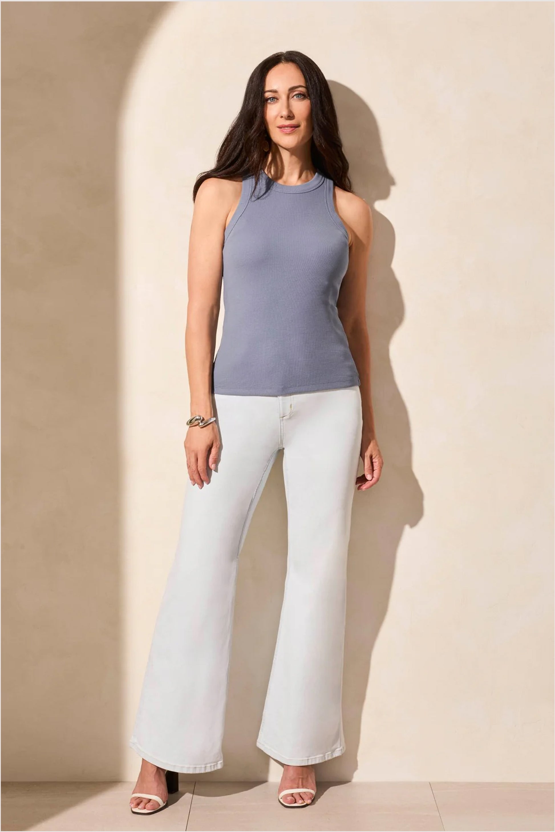 Opt for comfort with this classic racerback tank, crafted from stretchy baby rib knit. Its fitted cut ensures a flattering silhouette on its own and makes it easy to layer beneath a button-up shirt or sweater.