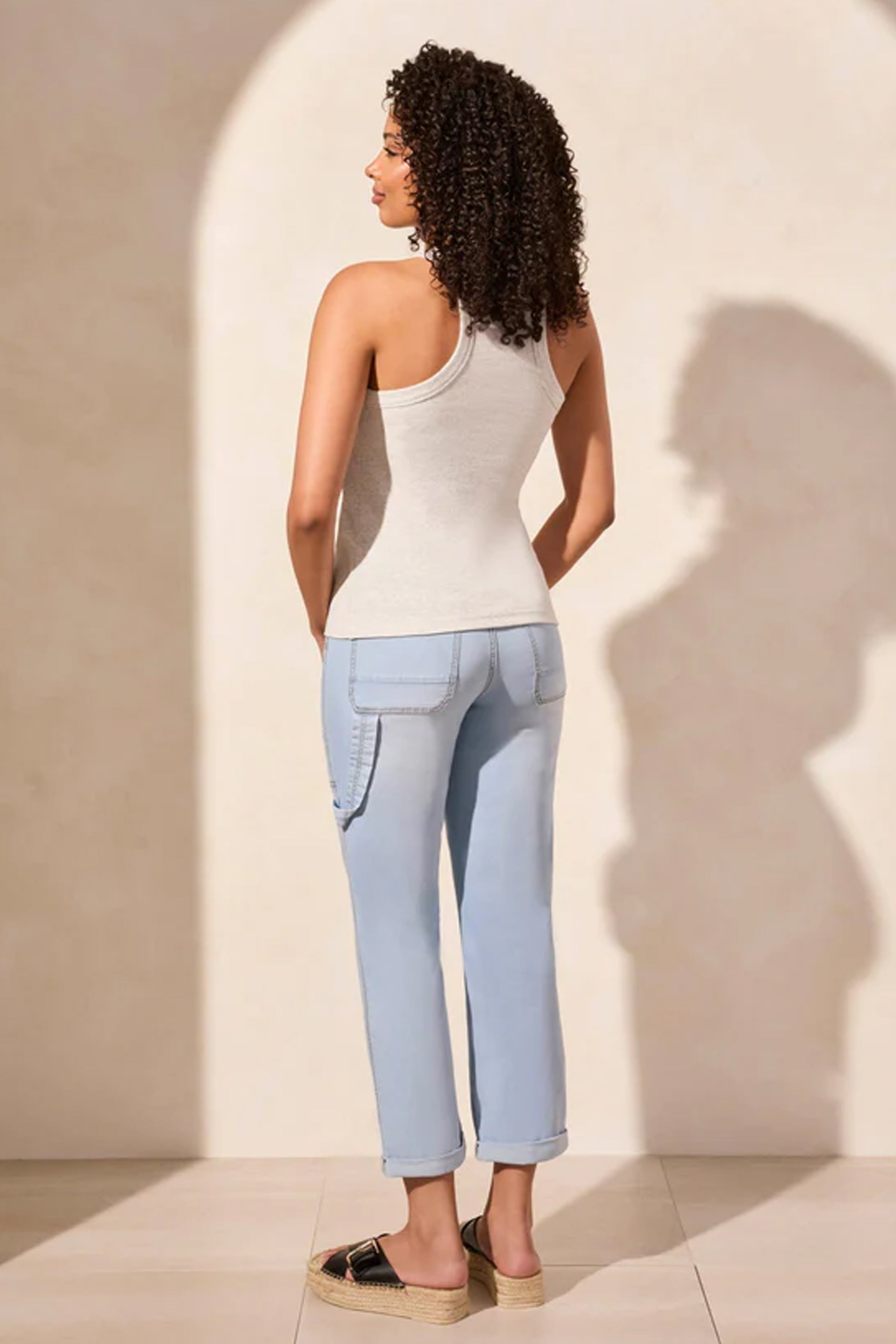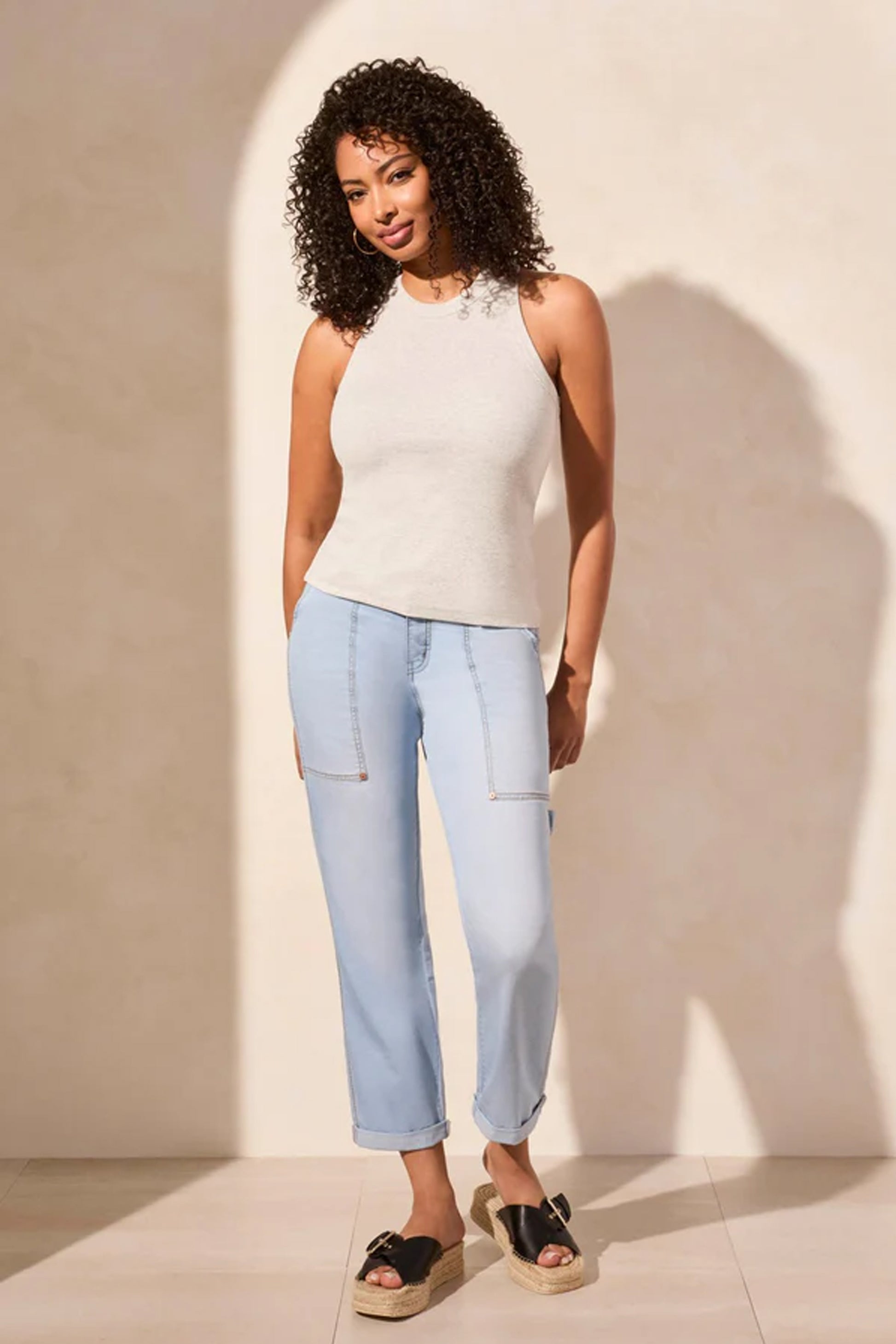 Opt for comfort with this classic racerback tank, crafted from stretchy baby rib knit. Its fitted cut ensures a flattering silhouette on its own and makes it easy to layer beneath a button-up shirt or sweater.